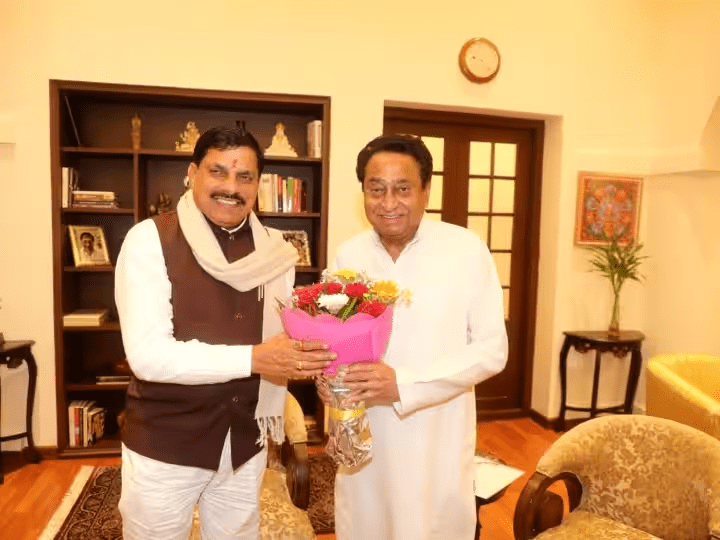 इससे पहले पूर्व मुख्यमंत्री कमलनाथ ने मुख्यमंत्री पद के नाम का एलान होने के बाद मोहन यादव से मुलाकात की थी. कमलनाथ ने इस दौरान मोहन यादव को पुष्पगुच्छ देते हुए बधाई दी थी. साथ ही दोनों नेताओं ने बैठककर बातचीत भी की थी. बता दें कांग्रेस पार्टी के कमलनाथ विधानसभा चुनाव में बीजेपी के धुर विरोधी और कांग्रेस का मुख्य चेहरा थे.